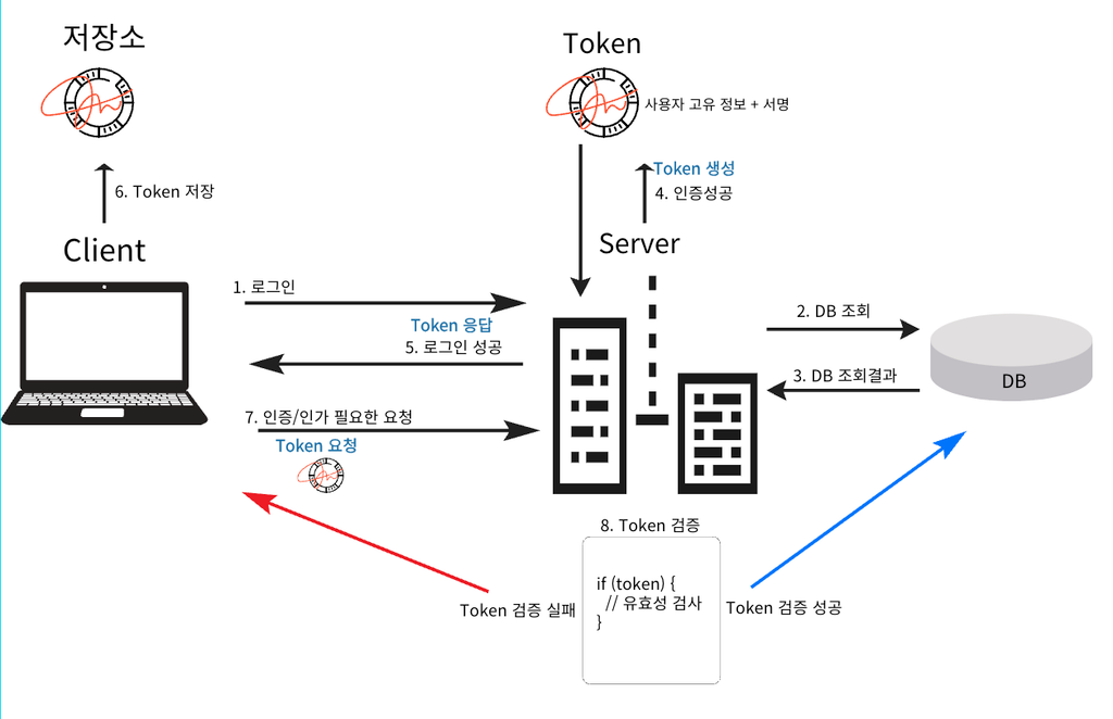 - 서명을 통해 서버는 Token이 변조되지 않았음을 확인할 수 있다.