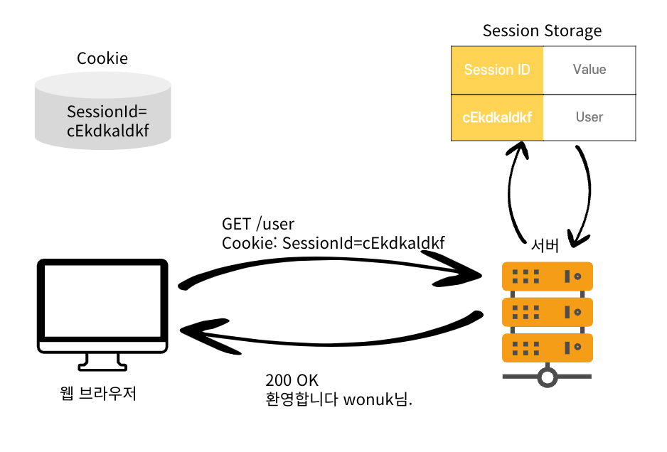 - 클라이언트 측에 저장되며, 서버에 요청을 보낼 때마다 포함되어 전송됨.