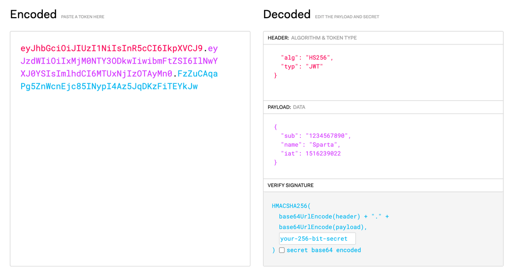 Header와 Payload는 Encoding된 값이기 때문에 복호화 혹은 값을 수정할 수 있지만 Signature는 서버에서 관리하는 값이기 때문에 Secret Key가 유출되지 않는 이상 복호화 할 수 없다.